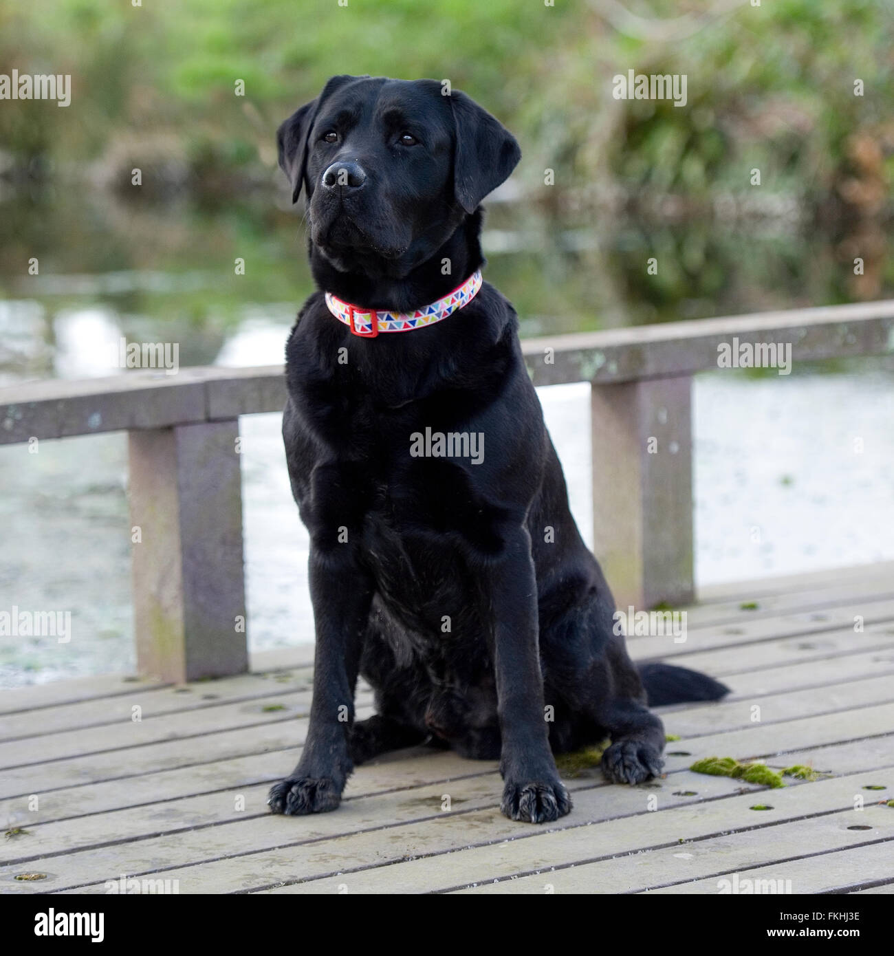 A Black Labrador Cross Breed Dog Stands At The Side Of A Lake Stock Photo Alamy