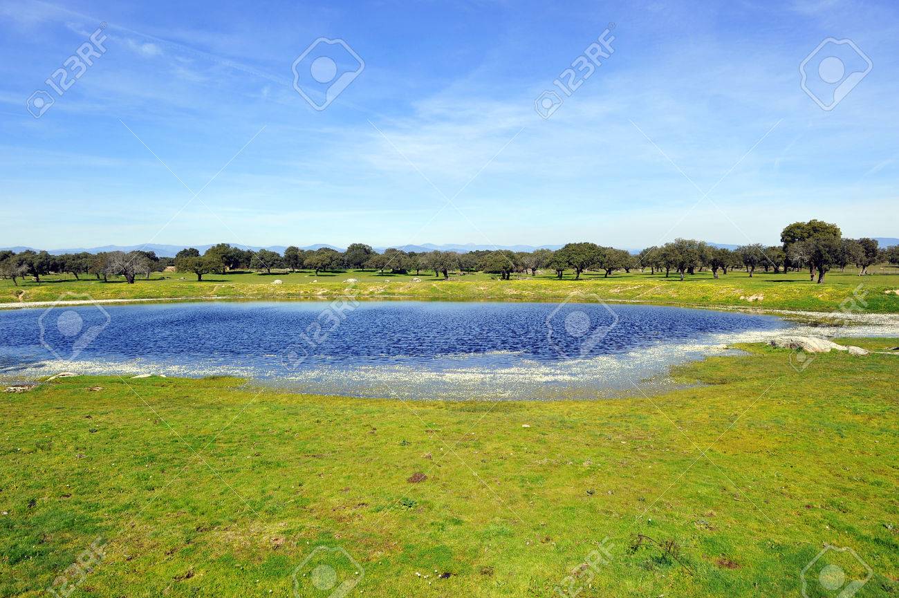 Immagini Stock Primavera In Extremadura Laguna Blu E Il Cielo Blu La Provincia Di Caceres Spagna Image 29075375