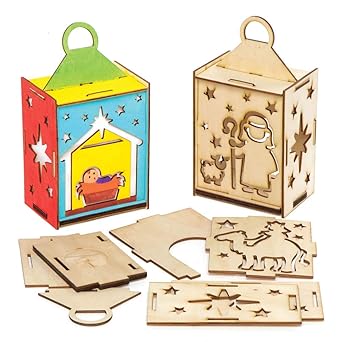 Baker Ross Ax558 Kit Lanterne Della Nativita In Legno Confezione Da 3 Artigianato Di Legno Da Colorare Per Bambini Attivita Festive Stagionali Amazon It Commercio Industria E Scienza