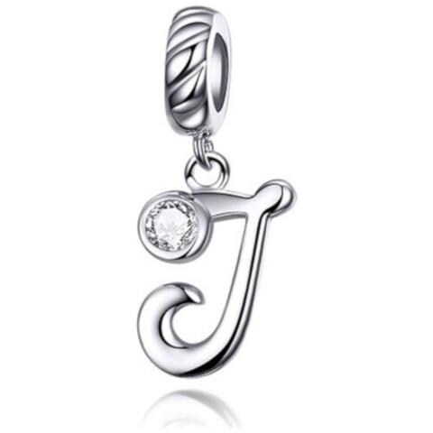 Charm Alfabeto In Argento Lettera J Con Pietre Di Zirconia Traspare