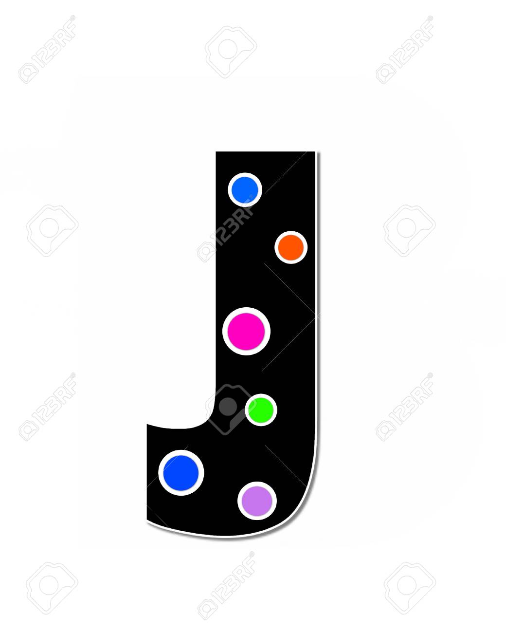 Immagini Stock La Lettera J Nel Set Di Alfabeto Bambini Che Decora Solo Lettere E Nera E Delineata Con Il Bianco Lettera Di Copertura Variopinta Dei Pois Image 62917147