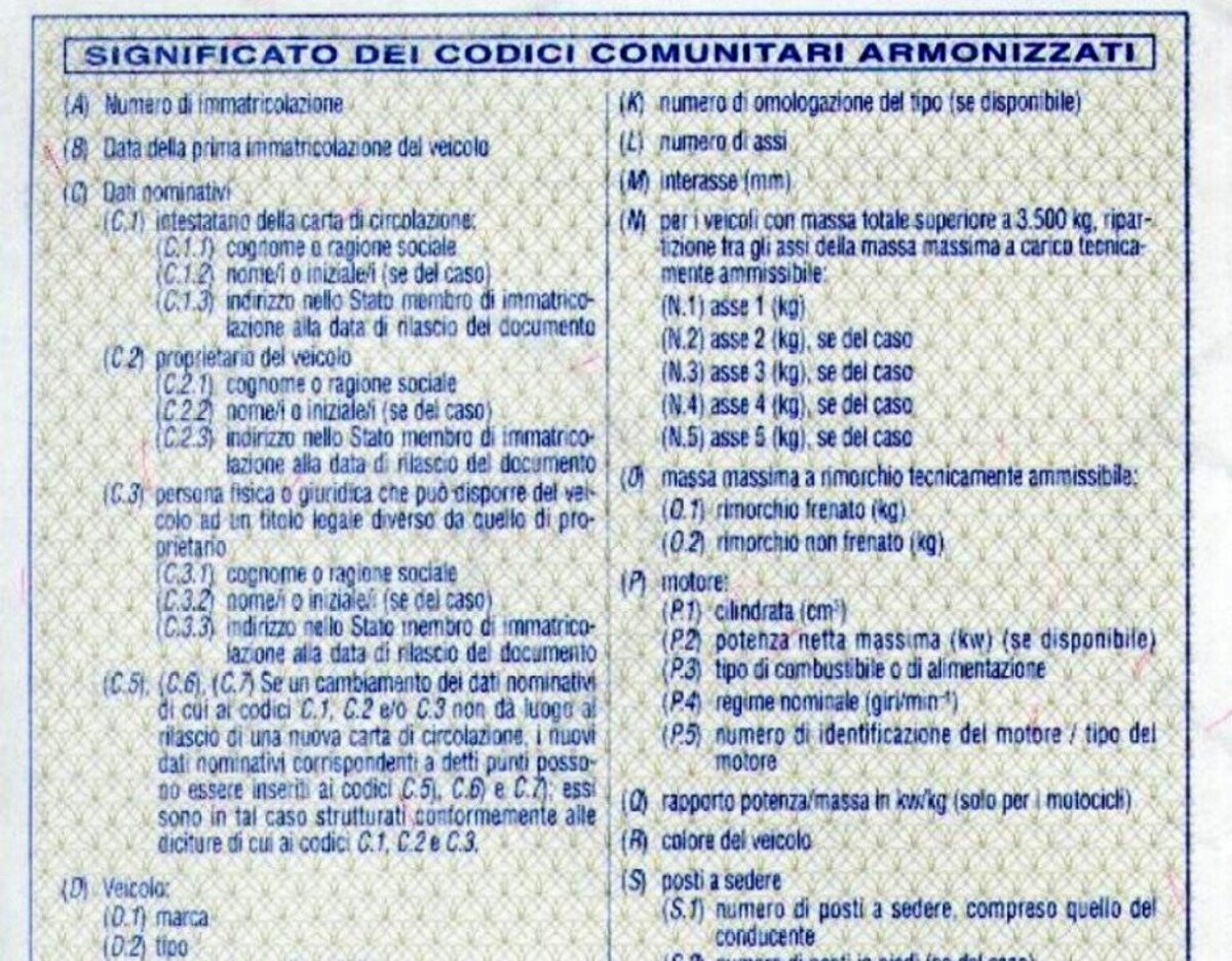 Come Si Legge Il Libretto Di Circolazione Auto Legenda Cavalli Fiscali Codici