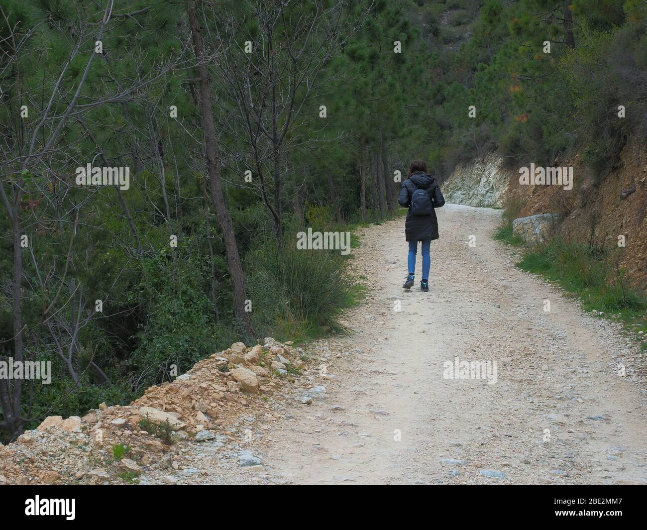 Young Woman Wlaking On A Mountain Pathway For Madonna Della Guardia Close To Varazze Genova Italy Stock Photo Alamy