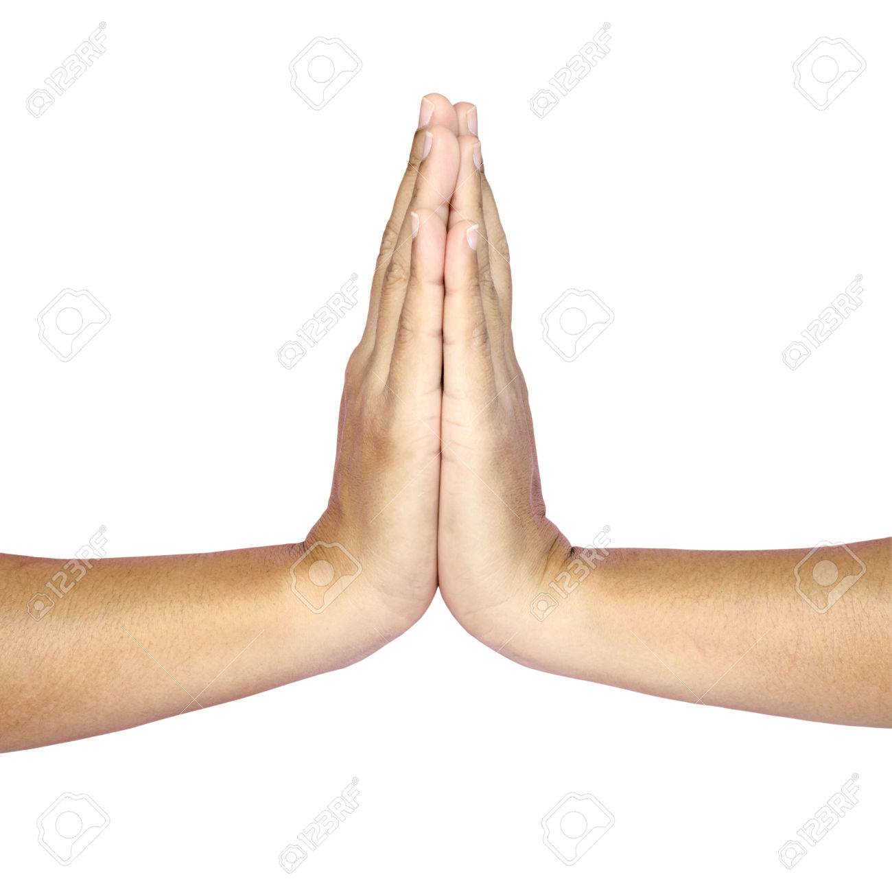 Immagini Stock Mani Che Si Tengono Per Mano Insieme E Simbolo Di Preghiera E Di Gratitudine Ciao E Grazie In Posizione Thai Image 29690142