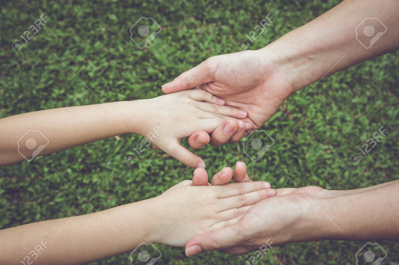 Immagini Stock Concetto Della Mano Amica Mani Che Si Tengono A Vicenda Sfondo Verde Image 97193022