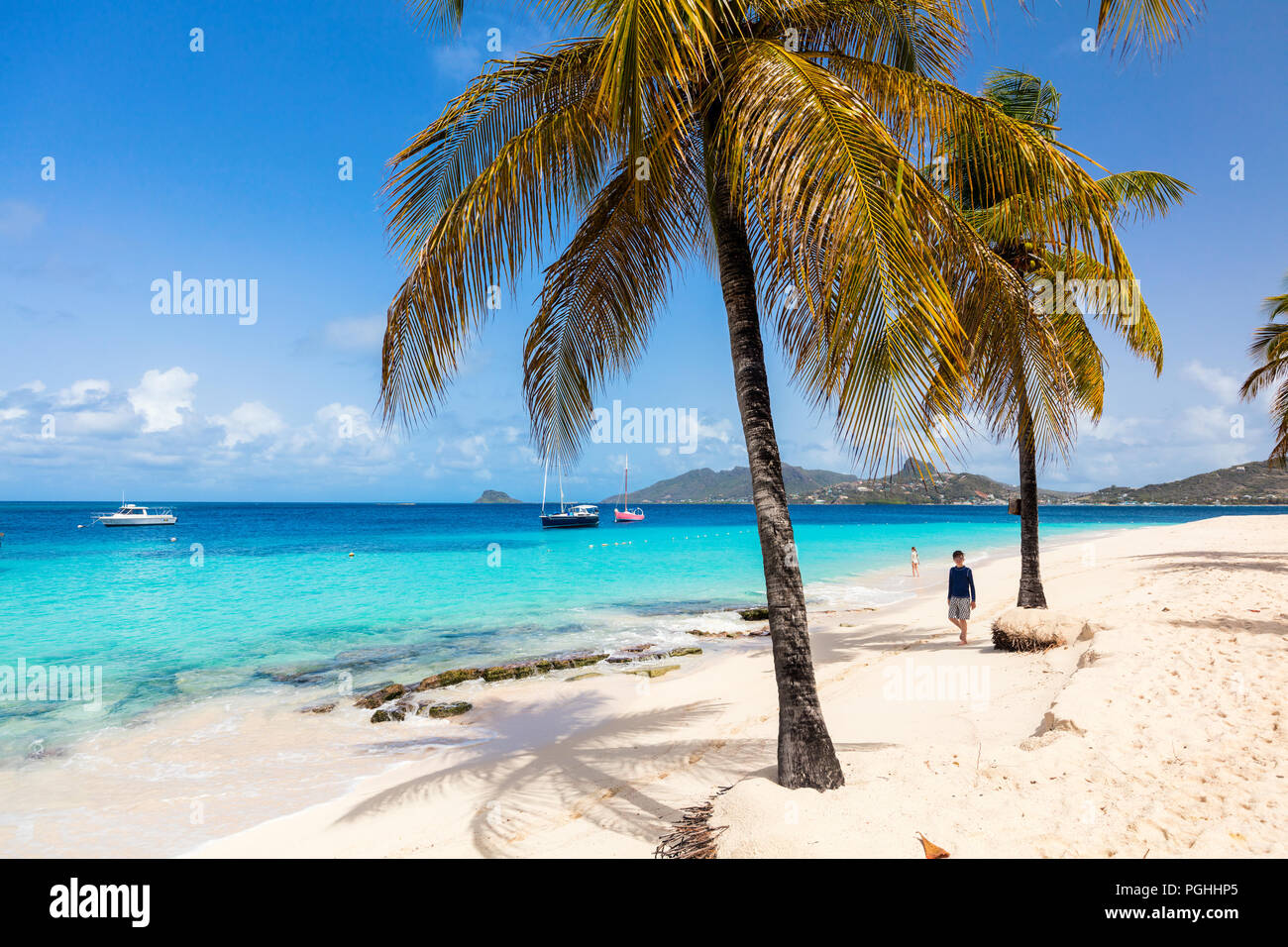 Spiaggia Tropicale Idilliaco Con Sabbia Bianca Palme E Turchese Del Mare Dei Caraibi Acqua Su Mayreau Isola In St Vincent E Grenadine Foto Stock Alamy