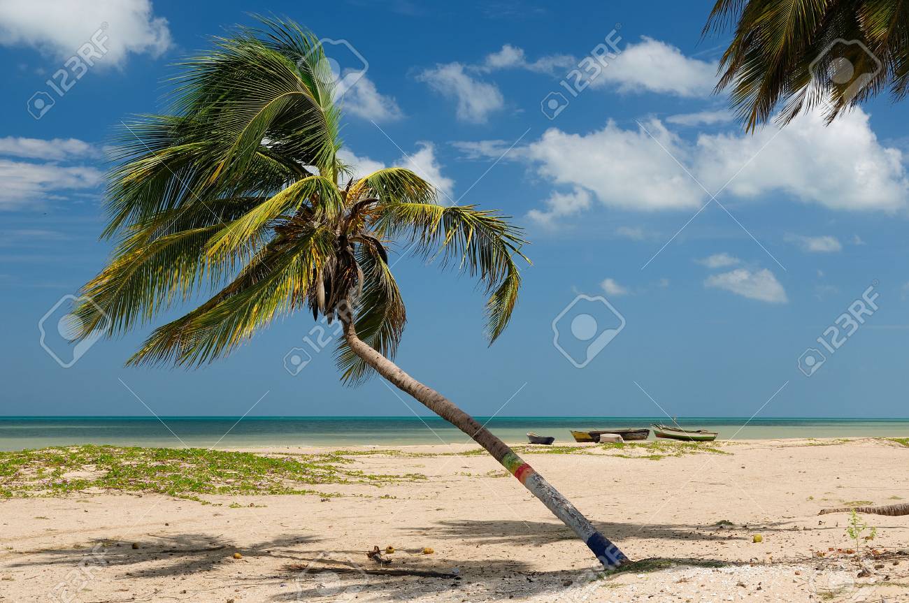 Palma Di Cocco Sulla Spiaggia Di Sunny E Il Mare Dei Caraibi Fotografia Stock Immagine Di Nave Palma 163634896