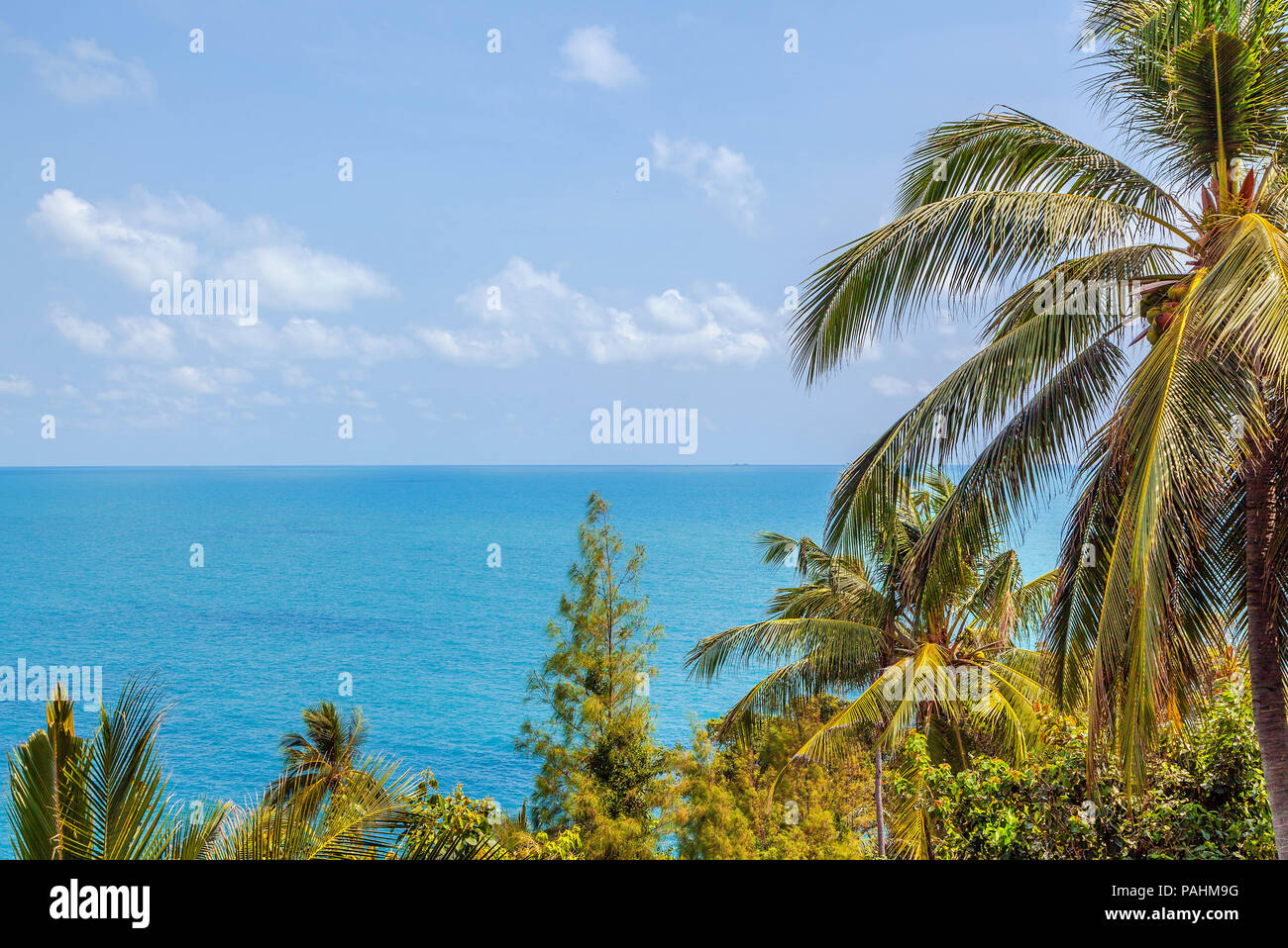 Paesaggio Tropicale Con Mare E Palme Foto Stock Alamy