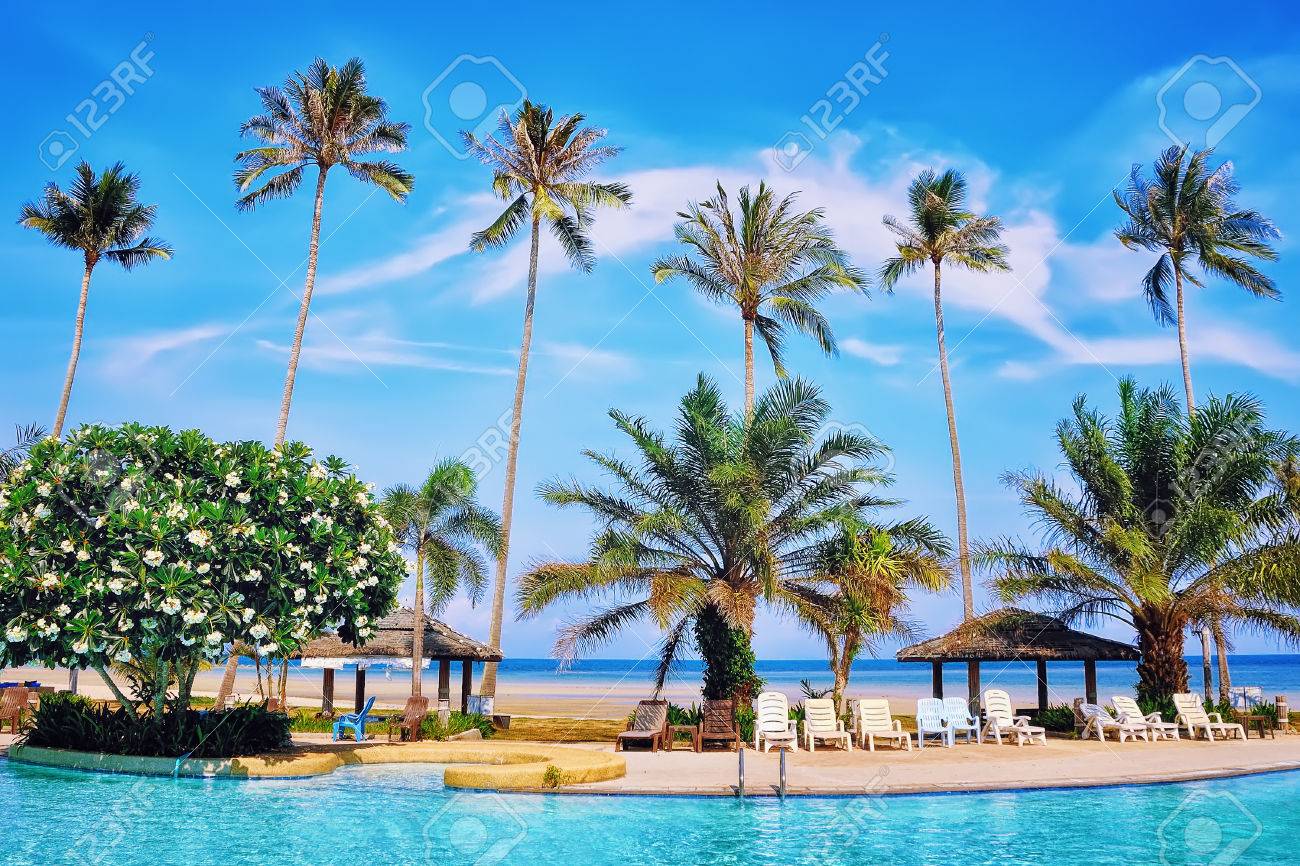 Immagini Stock Localita Di Villeggiatura Estiva Di Koh Samui Turchese Piscina Mare E Palme Blu In Thailandia Image 38524308