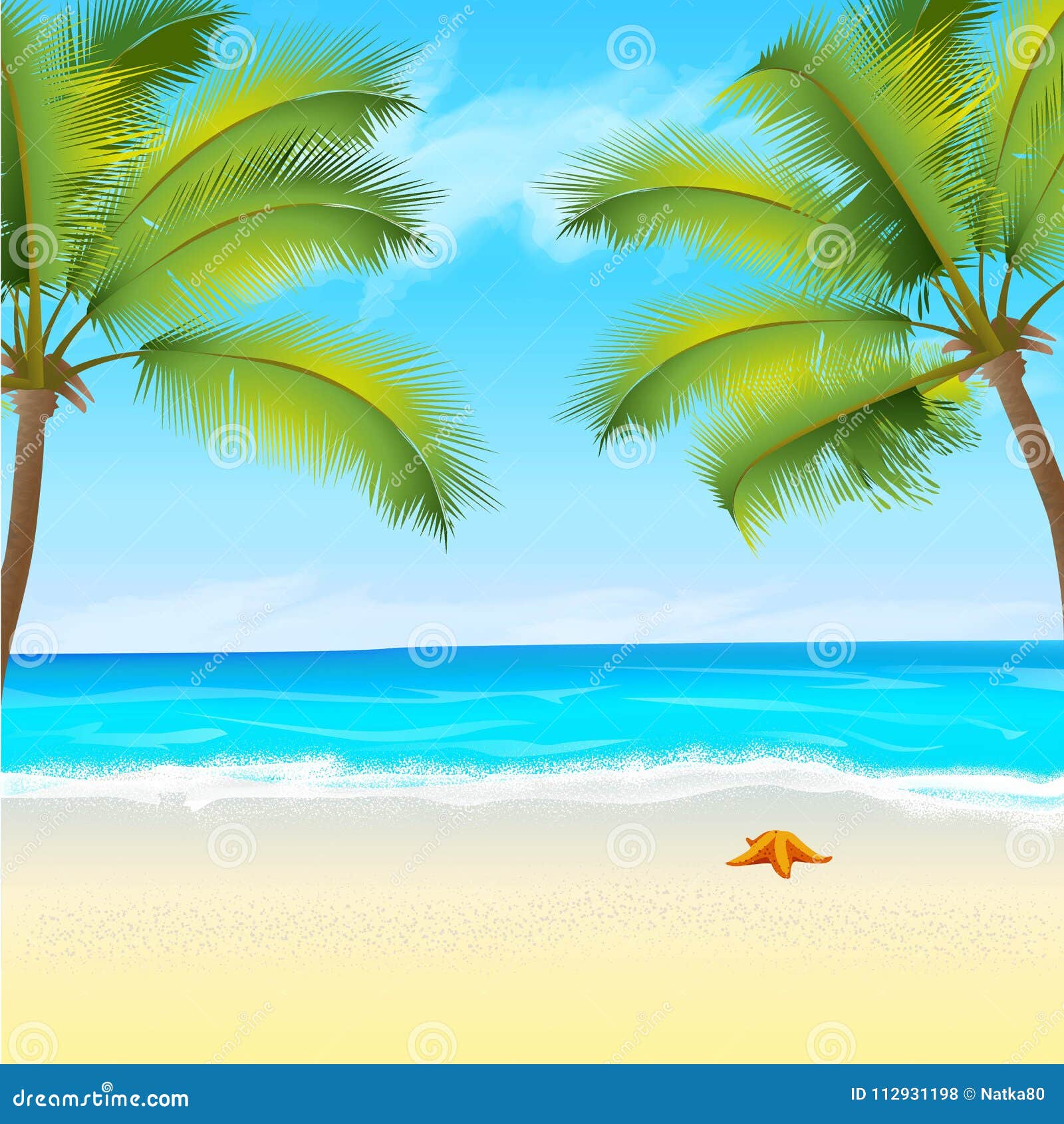 Cieli Delle Stelle Marine E Della Spiaggia E Palme Illustrazione Vettoriale Illustrazione Di Felice Spiaggia 112931198