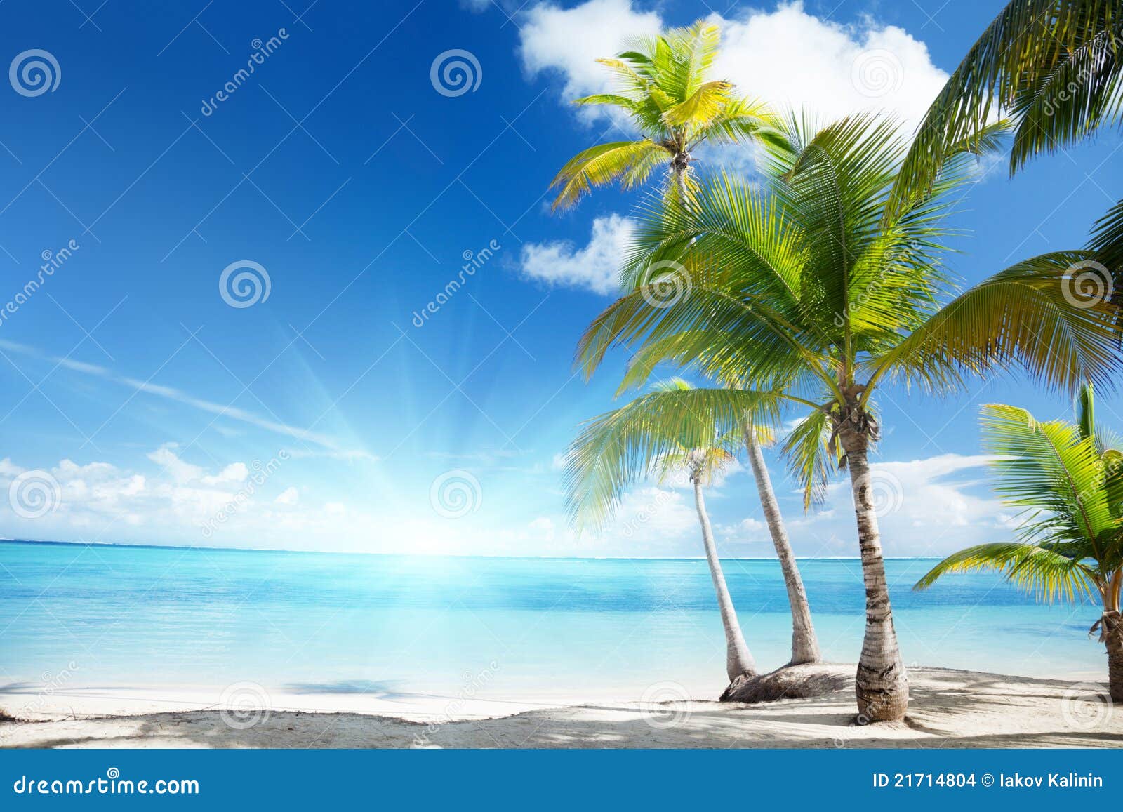 Sogno Spiaggia E Palme Paesaggio Palma Mare Blu Exotism Archivio Fotografico F0001029 Fotosearch