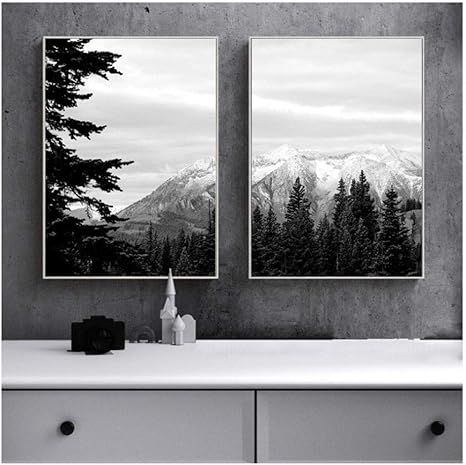 Quadro Su Tela Con Alberi Di Montagna E Neve In Bianco E Nero 50 X 70 Cm Senza Cornice Amazon It Casa E Cucina