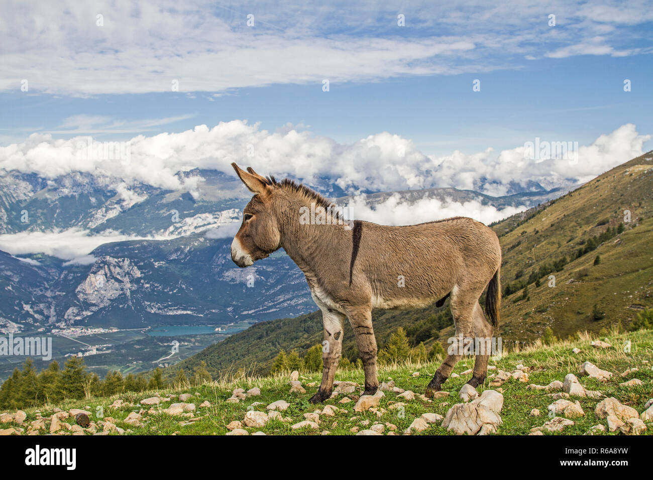 Asino Su Un Prato Di Montagna Del Trentino Foto Stock Alamy