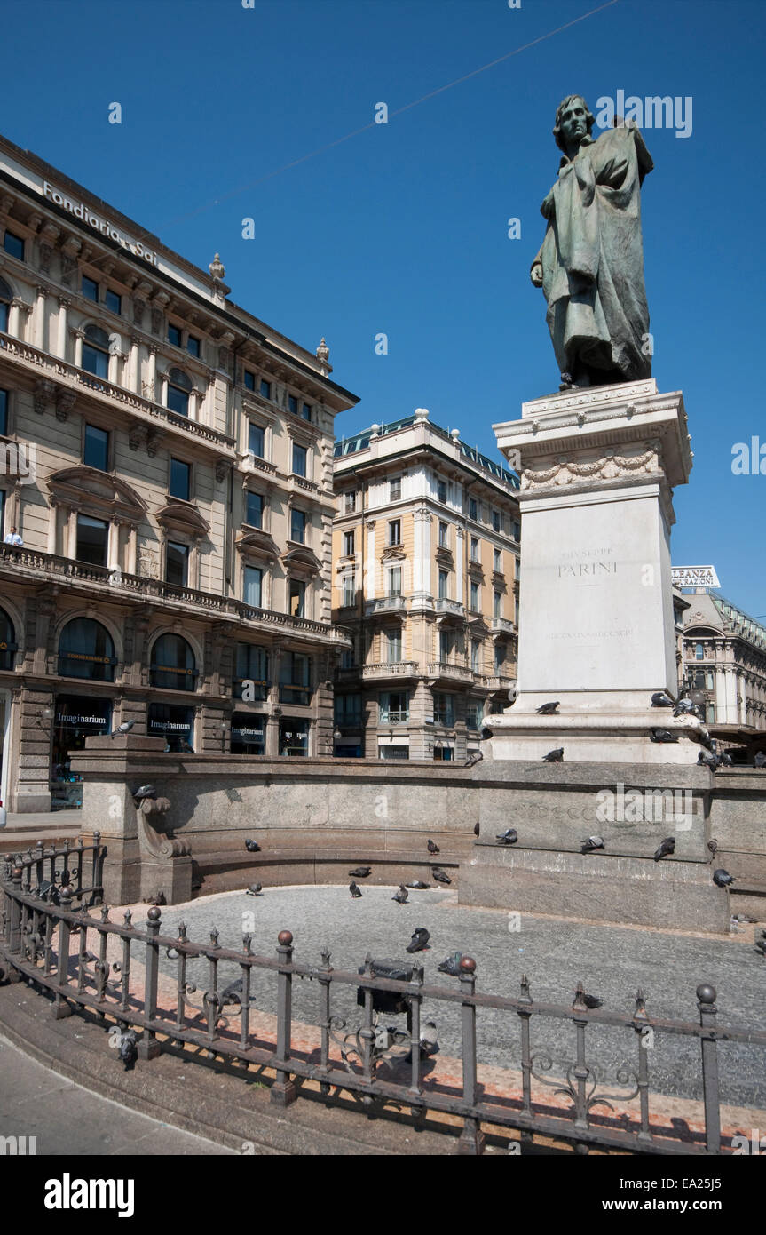L Italia Lombardia Milano Giuseppe Parini Monumento In Piazza Cordusio Con Dante Street Foto Stock Alamy
