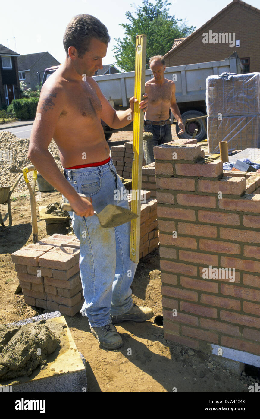 In Topless Di Muratori Al Lavoro Sul Piccolo Edificio Sito Bedfordshire Foto Stock Alamy