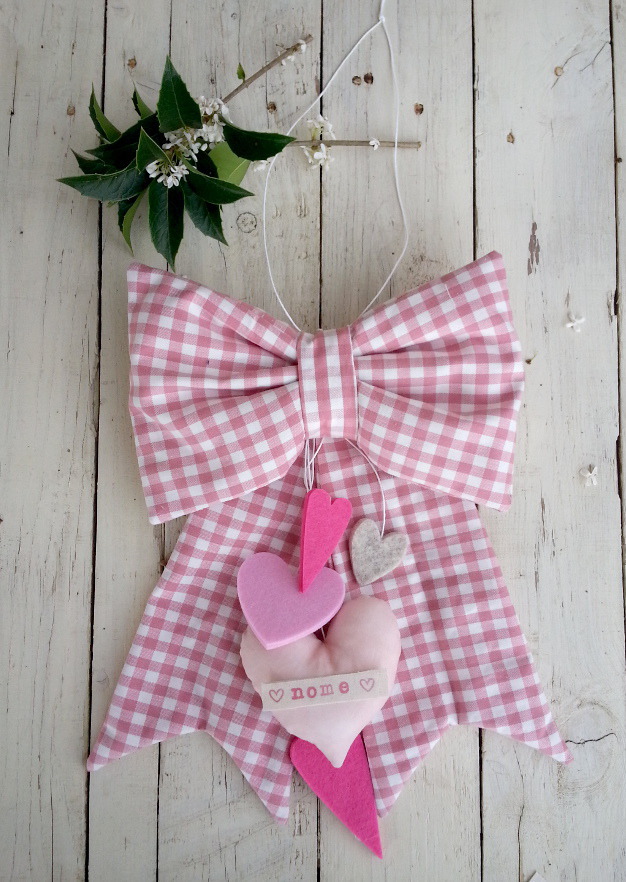 Coccarda Ghirlanda Fiocco Nascita Femmina Bambina Rosa Nome Cuore Shabby Glitter Ebay