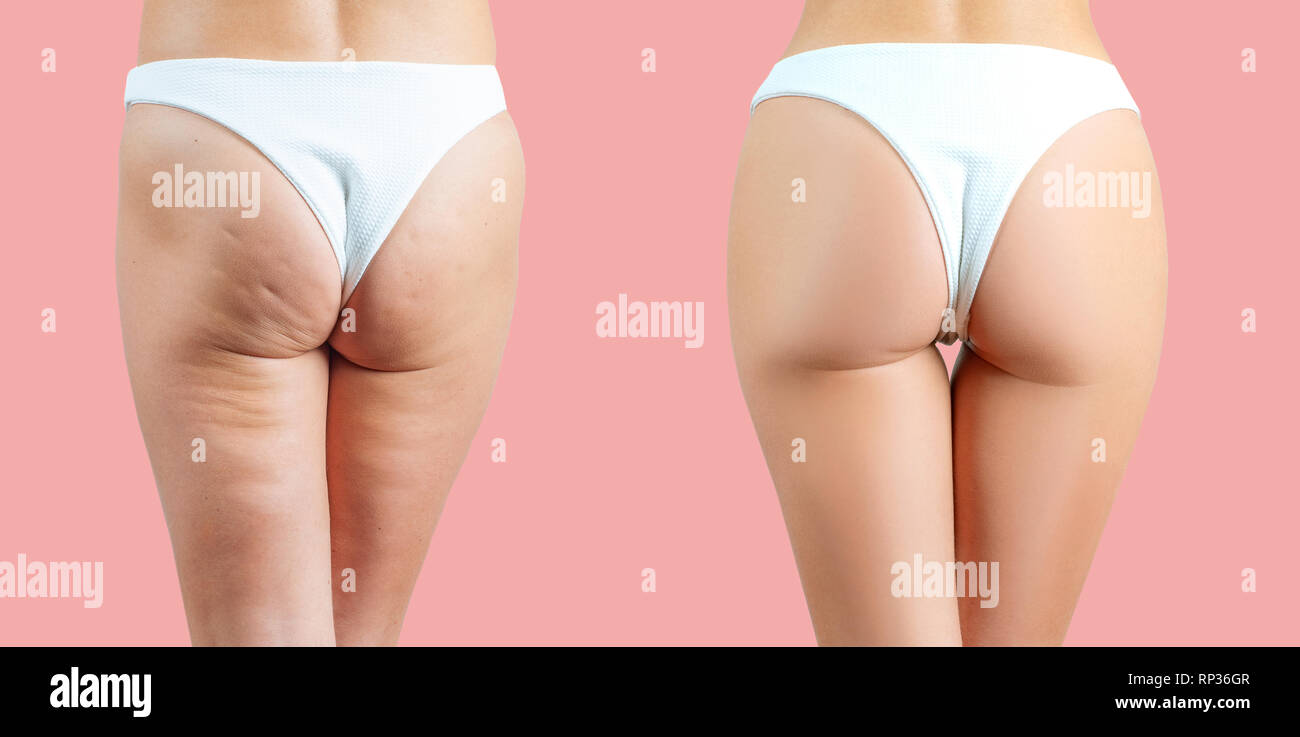 Natiche Femmina Prima E Dopo Anti Cellulite Rosa Su Sfondo Pastello Foto Stock Alamy