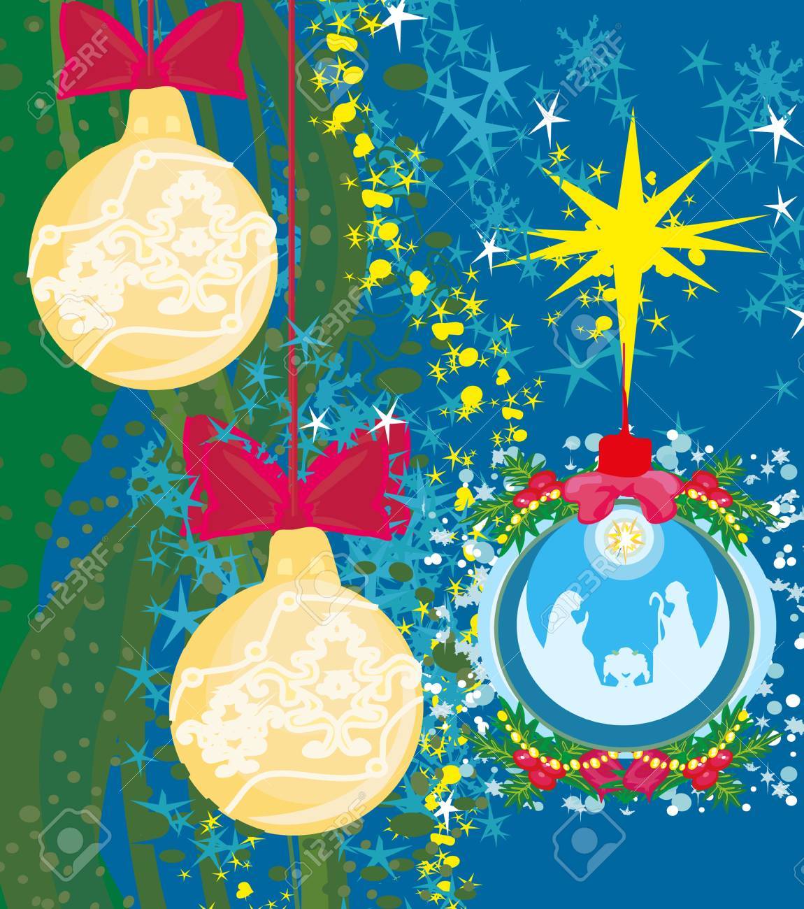 Vettoriale Nativita Di Natale Di Gesu Bambino In Palla Trasparente Appesa Su Sfondo Astratto Image 78976298