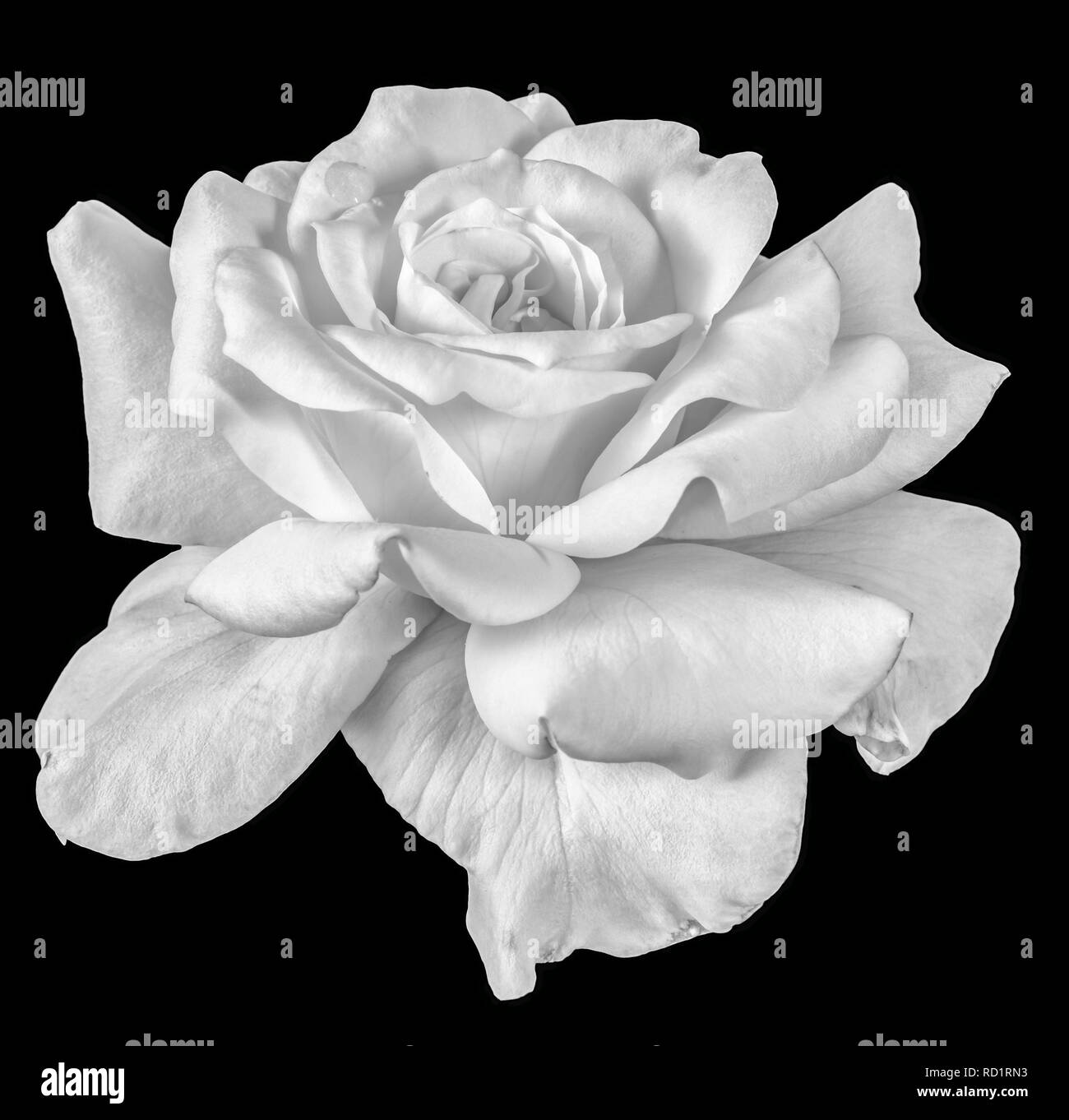 Arte Natura Morta Di Fiori In Bianco E Nero Vista Frontale Foto Macro Di Una Vasta Bianco Aperto Bocciolo Di Rosa Con Texture Dettagliate Su Sfondo Nero Foto Stock Alamy