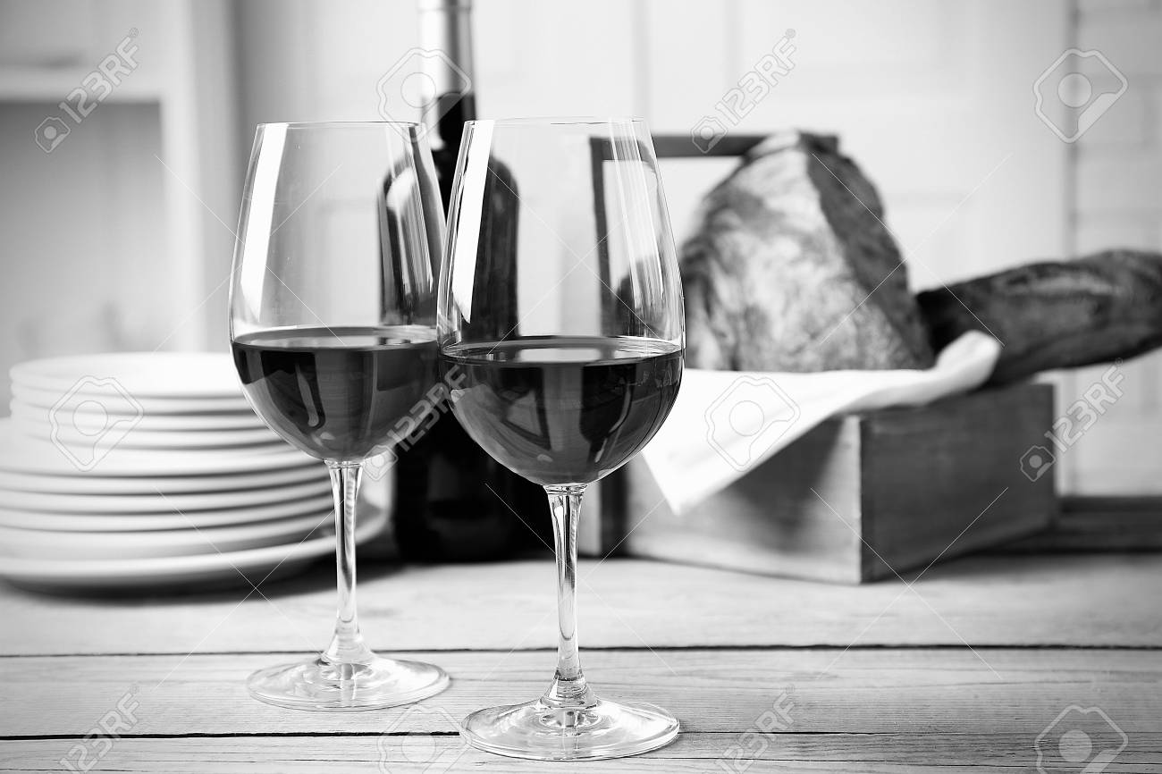 Immagini Stock Natura Morta Di Vino E Pane Stilizzazione Retro In Bianco E Nero Image 47947159