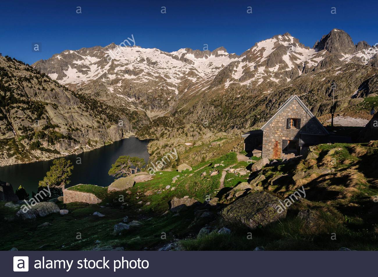 Immagini Stock Un Lago Artificiale Embassament De Cavallers E Formato Con Il Piccolo Fiume Di Montagna El Riuet D Estany Negre Dal Lago Di Montagna Estany Negre Nella Valle Boi Image 58766721