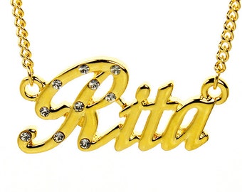 Collana Con Nome Rita In Oro Giallo 18kt Diamantata Gioielli Personalizzati In Oro E Argento Made In Italy Collanaconnome It