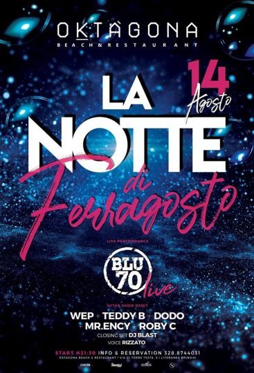 La Notte Di Ferragosto All Oktagona Con I Blu 70 E Con Djset Brindisitime It Network News Da Brindisi E Provincia