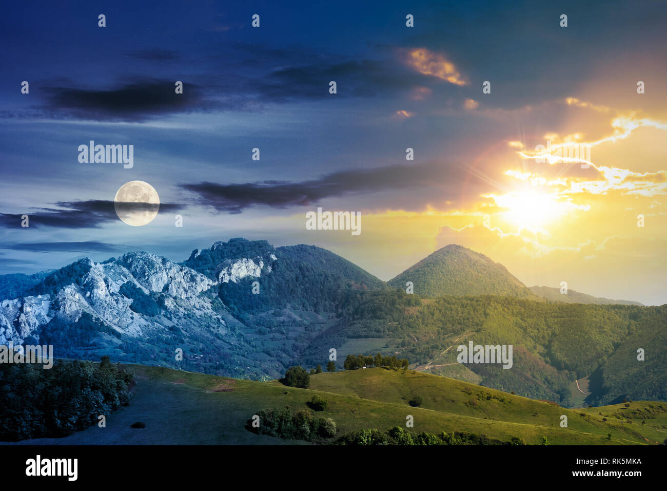 Il Giorno E La Notte E Cambiare Idea Al Di Sopra Delle Montagne Con Formazioni Rocciose