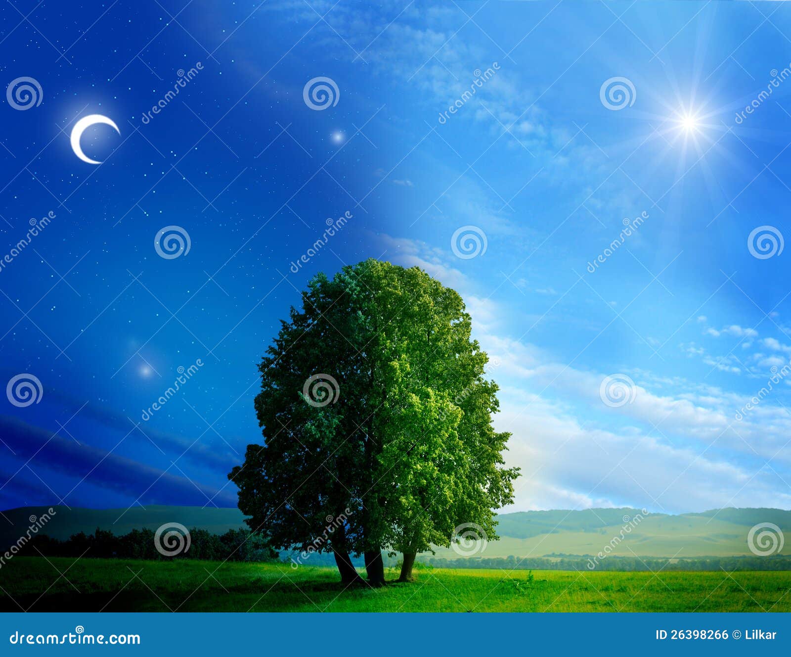 Albero Di Notte E Di Giorno Fotografia Stock Immagine Di Fogli Background 26398266