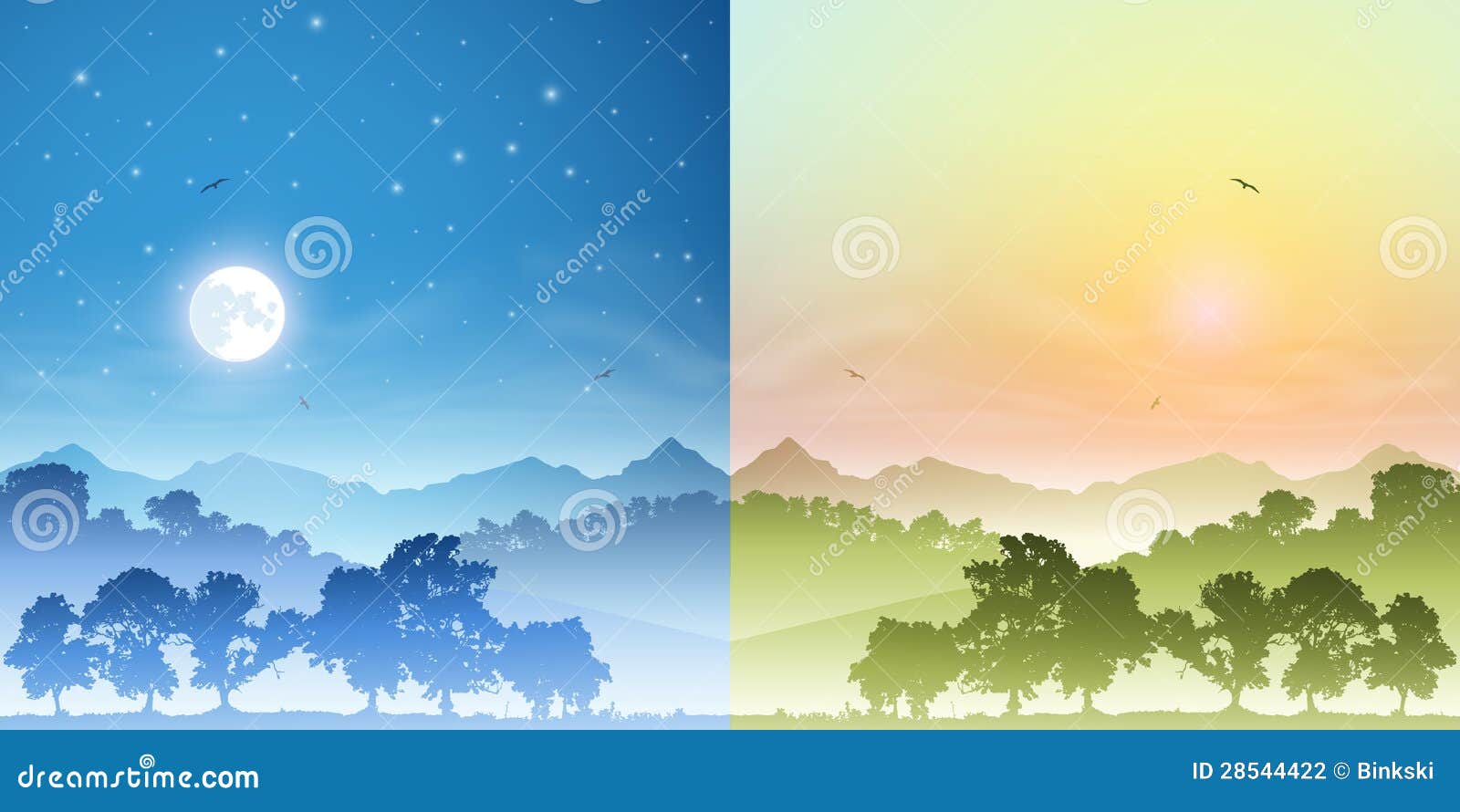 Paesaggi Di Notte E Di Giorno Illustrazione Vettoriale Illustrazione Di Illustrazione Notte 28544422