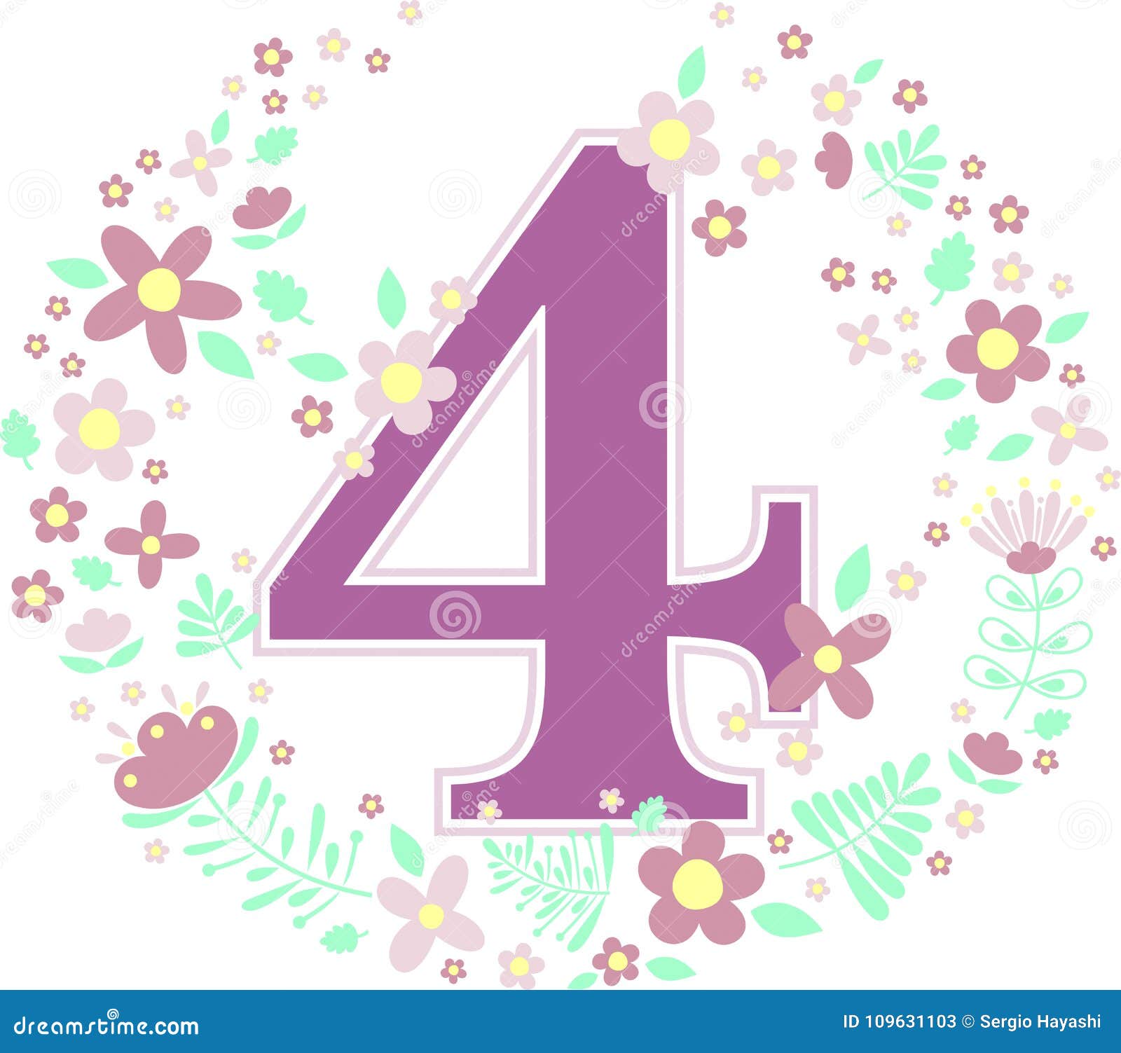 Numero 4 Con I Fiori Decorativi Illustrazione Vettoriale Illustrazione Di Cute Illustrazione 109631103