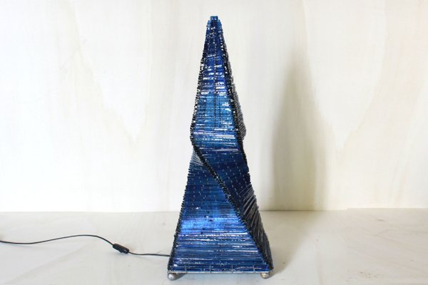 Lampada Da Terra A Forma Di Piramide In Vetro Blu Anni 70 In Vendita Su Pamono