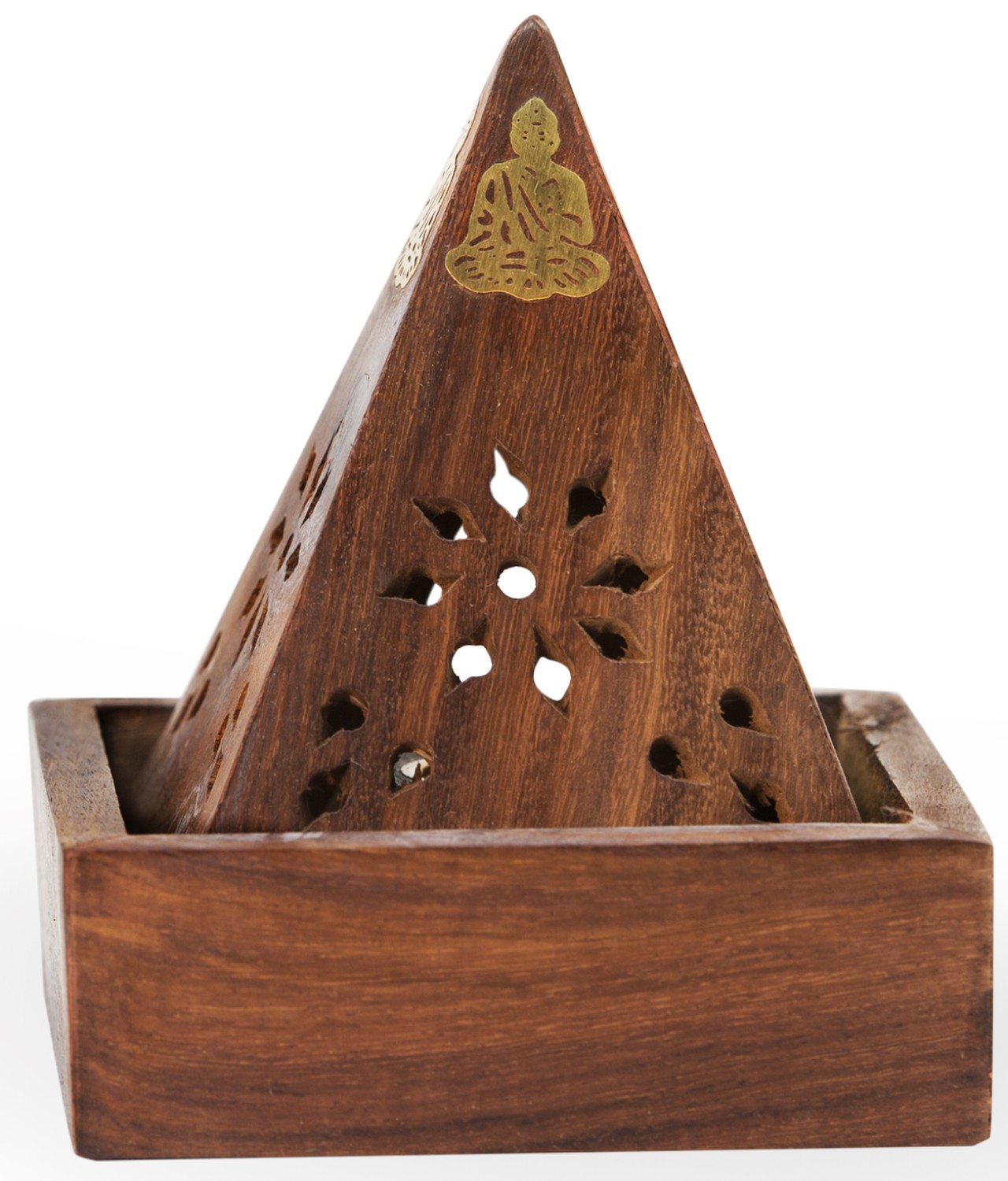 Piramide Brucia Incenso In Legno Sheesham Con Buddha