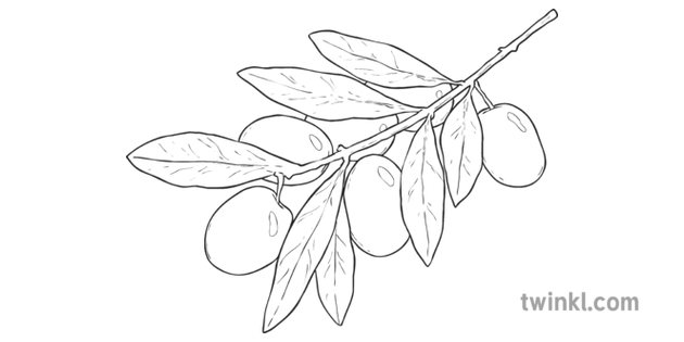 Olive Branch Plant Fruit Ks2 Black And White Rgb Illustration Twinkl