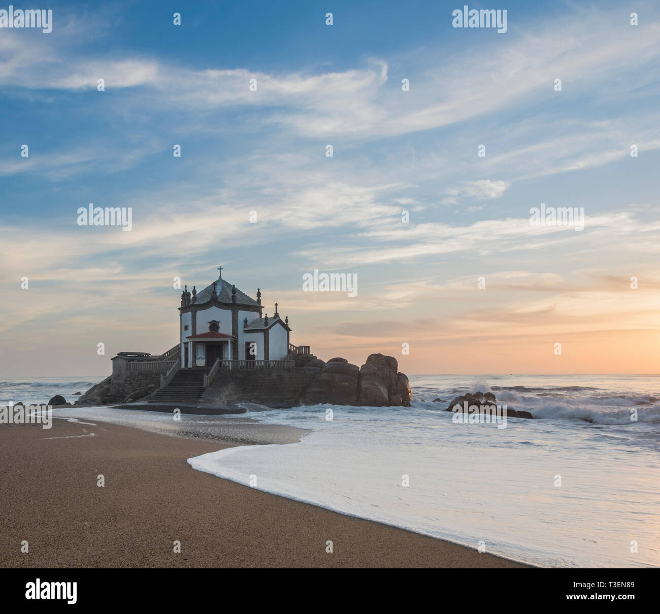 Il Tramonto Dalla Cappella Sulla Spiaggia Vicino Miramar Oporto Portogallo Foto Stock Alamy