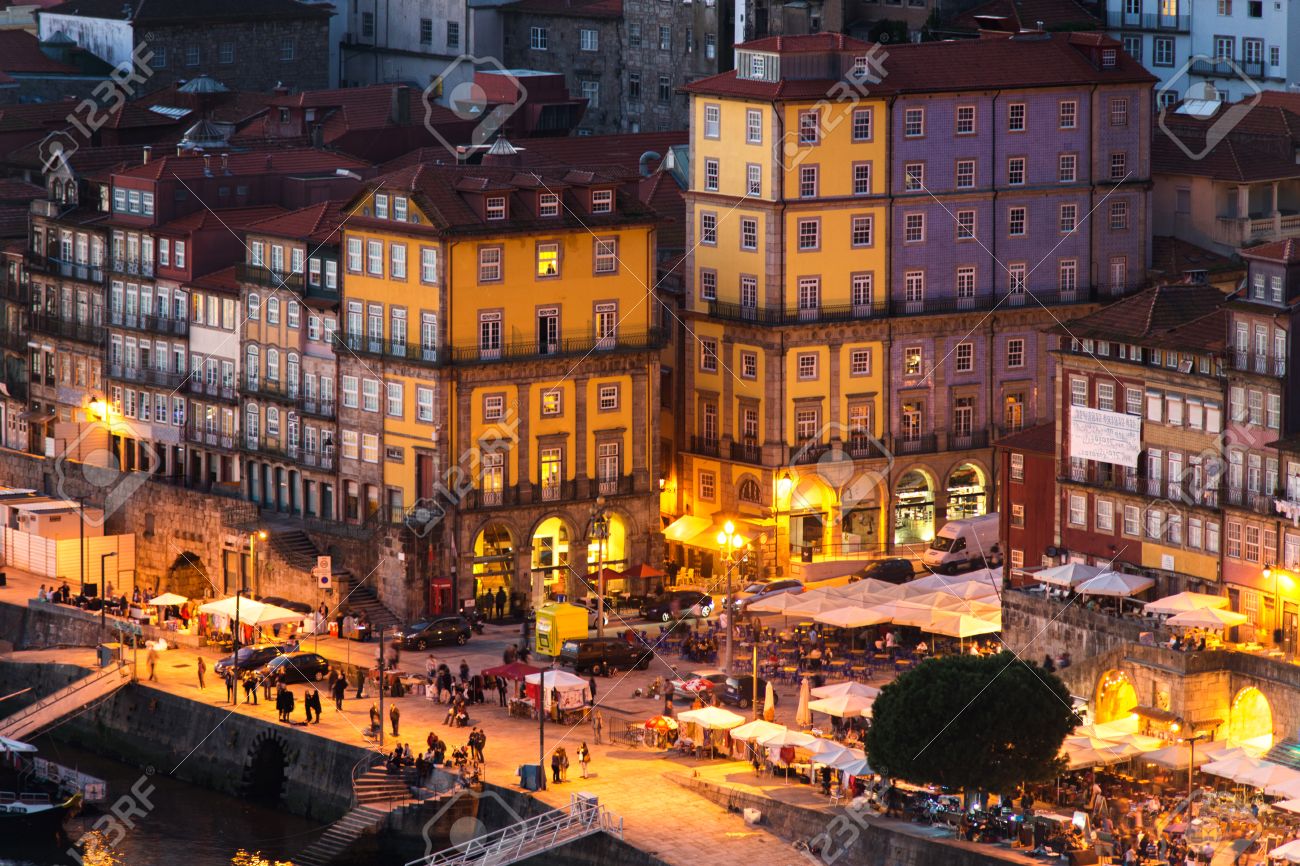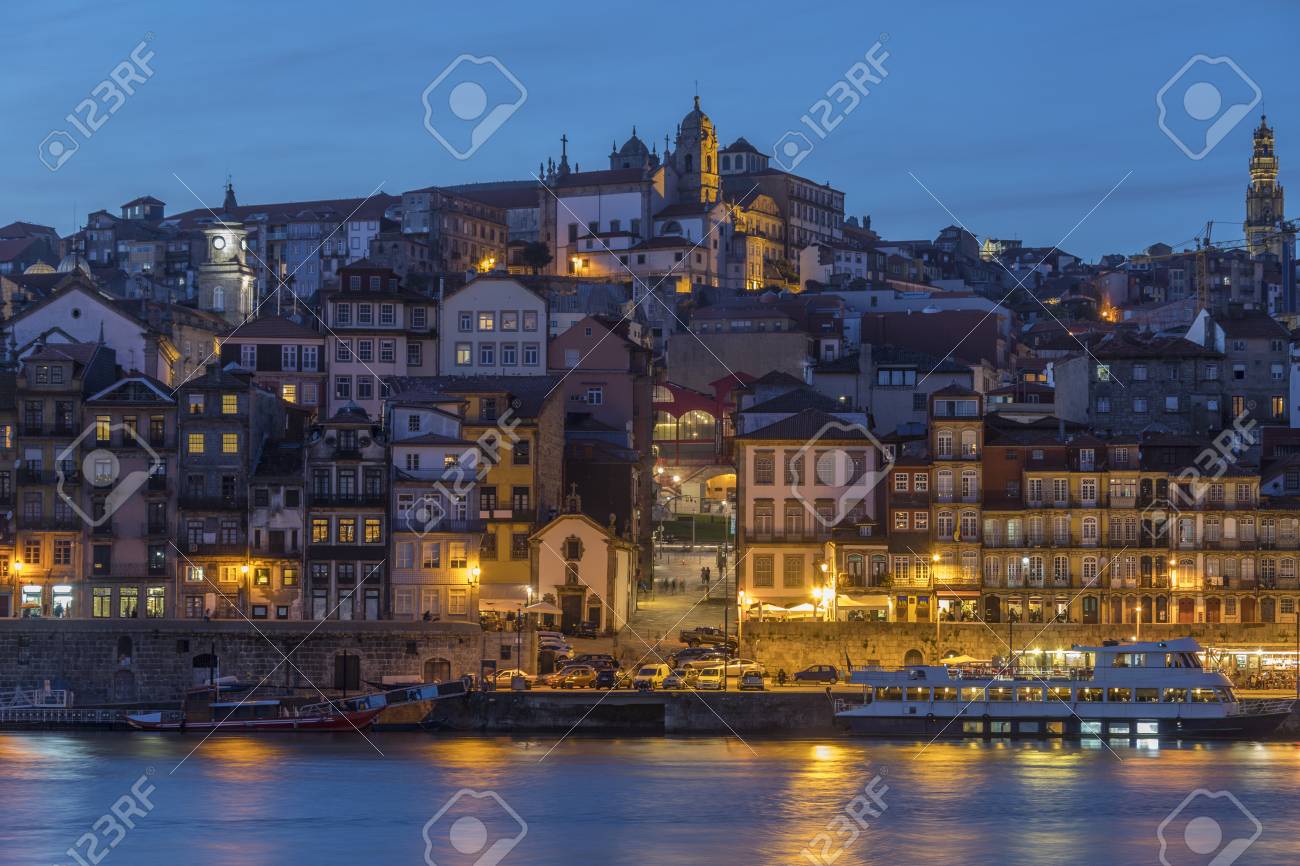 Immagini Stock Crepuscolo Sul Lungomare Di Ribeira Nella Citta Di Porto Oporto In Portogallo Image 81267884