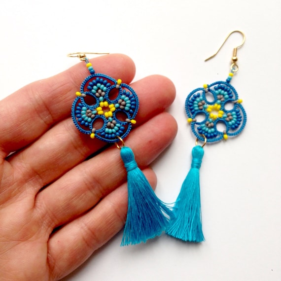 Orecchini Chiacchierino Con Nappine Gioielli Pizzo Etsy