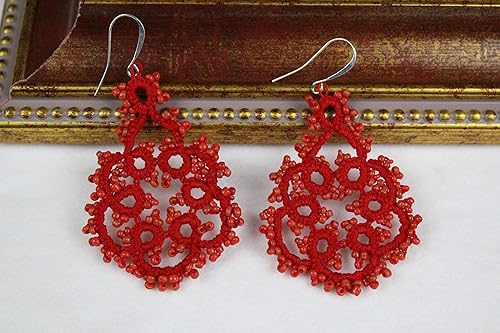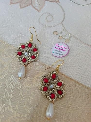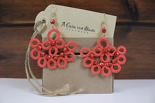 Orecchini Rossi In Pizzo Chiacchierino Realizzati A Mano Orecchini Con Perline Amazon It Handmade