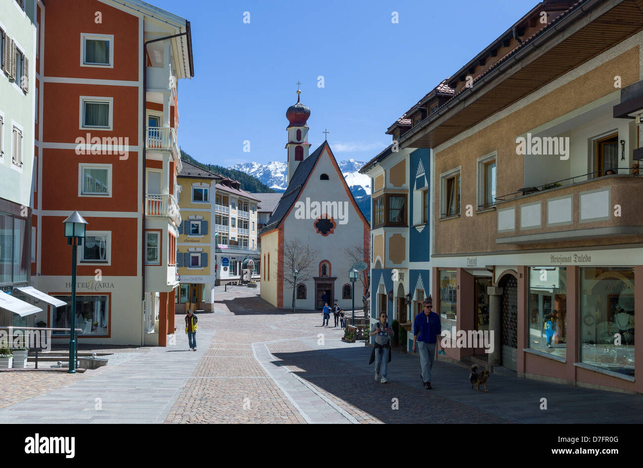 L Italia Dolomiti Trentino Alto Adige Ortisei Case E Negozi Del Centro Storico Della Citta Foto Stock Alamy