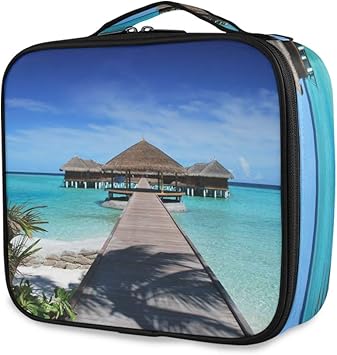 Custodia Da Toilette Portatile Moda Borsa Da Spiaggia Con Paesaggi Tropicali Borsa Per Trucco Strumenti Trucco Cosmetico Custodia Da Viaggio Amazon It Bellezza