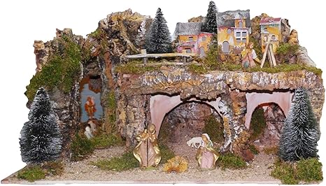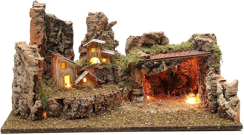 Holyart Grotta Presepe Con Paesaggio E Luci 28x58x32 Cm Amazon It Casa E Cucina