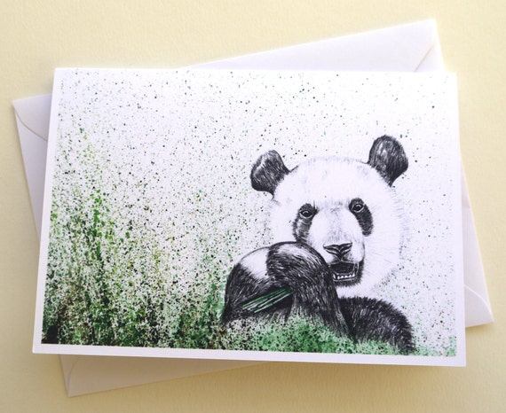 Carta Fatta A Mano Panda Disegno A Matita Acquerello Etsy