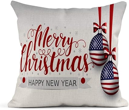 Kinhevao Cuscino Da Lancio Rosso Usa Natale Scritte Patriottiche E Palline Bandiera Americana Merry Happy New Year Celebration Cuscino In Lino Cuscino Decorativo Per La Casa Amazon It Casa E Cucina