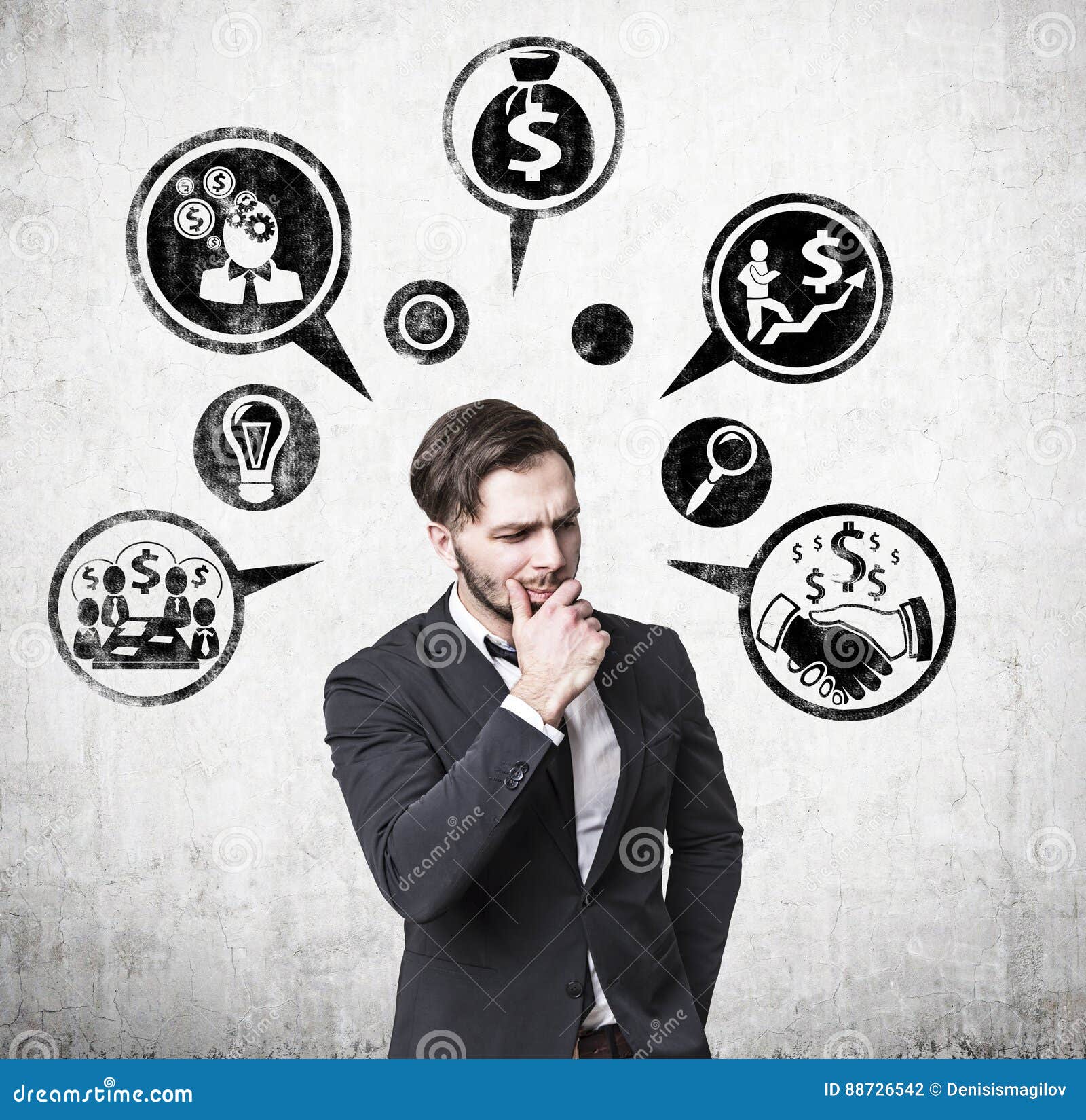 Icone Pensierose Dei Soldi E Dell Uomo D Affari Fotografia Stock Immagine Di Convenzionale Blank 88726542