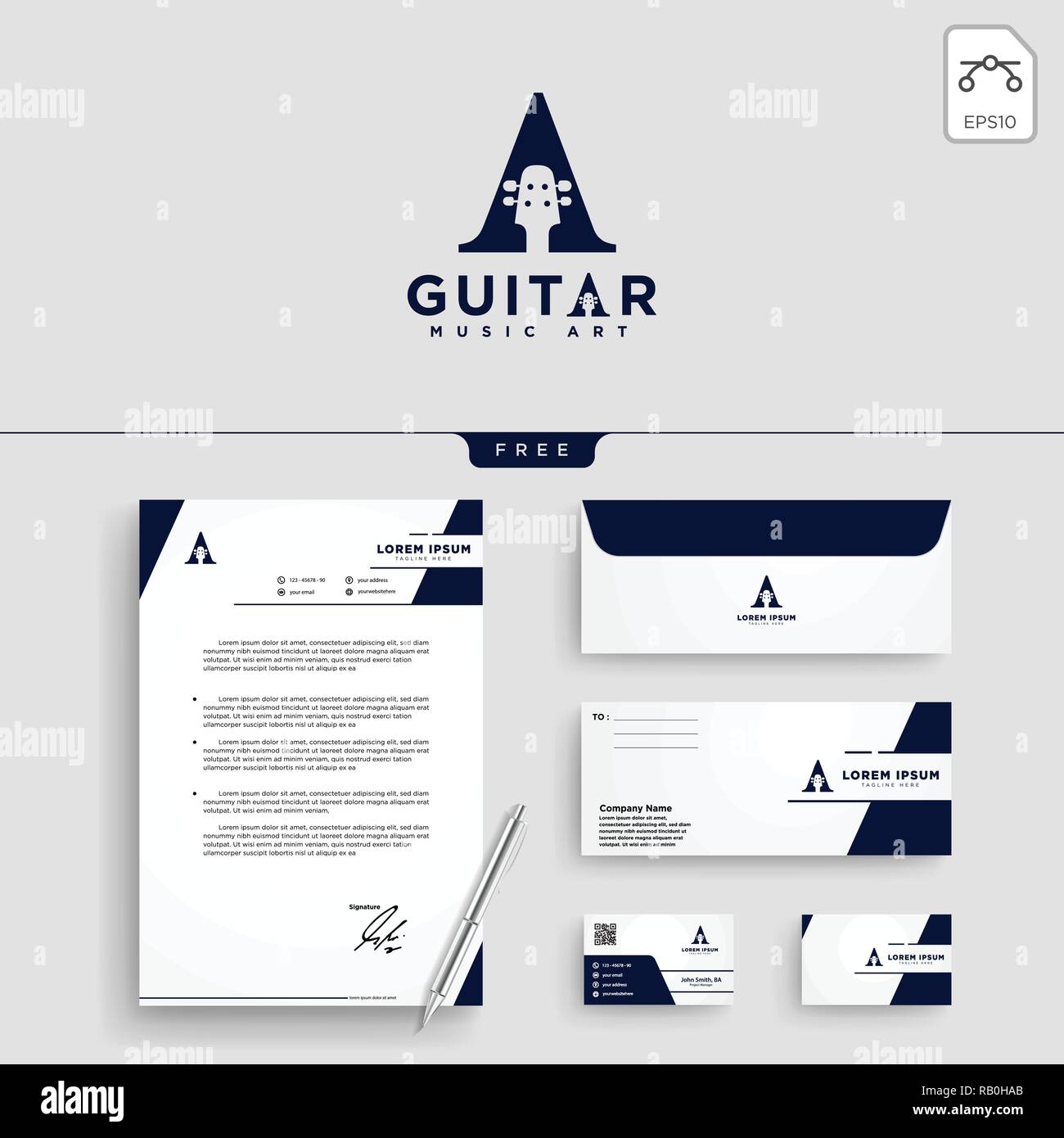 Musica Per Chitarra A Iniziale Modello Logo Illustrazione Vettoriale E Articoli Di Cartoleria Carta Intestata Busta Immagine E Vettoriale Alamy