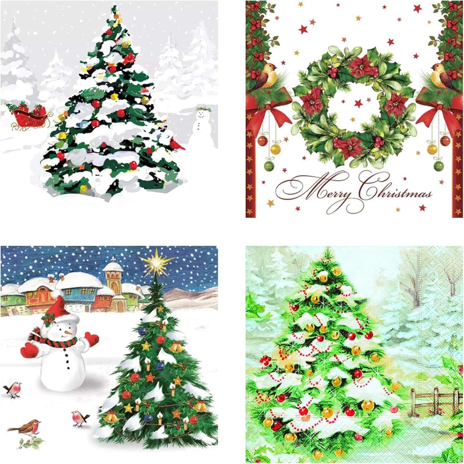 Tovaglioli Per Decoupage A 3 Strati 33 X 33 Cm Motivo Albero Di Natale 4 Pezzi Amazon It Casa E Cucina