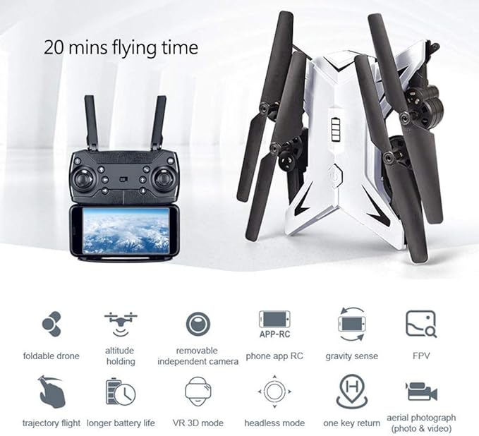Zouminy Ky601s Pieghevole 3 7v 1800mah Rc Wifi Quadcopter Drone Senza Testa Altitudine Di Volo 100m Con Videocamera Hd 5mp Camera Bianca Amazon It Casa E Cucina