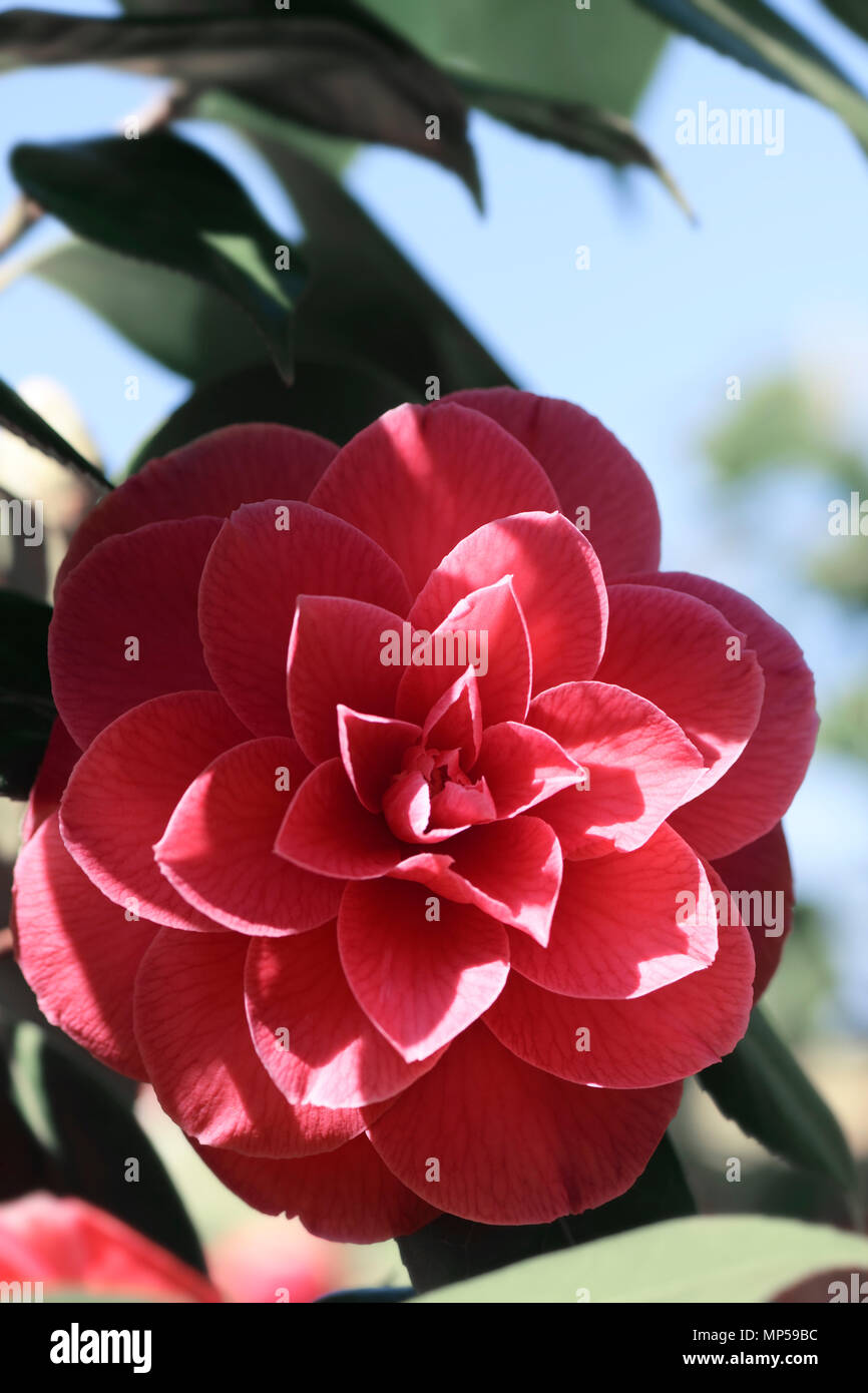 Primo Piano Artistico Di Un Rosso Japanese Camellia Petali Di Fiori Incandescente In Presenza Di Luce Solare Camellia Japonica Foto Stock Alamy