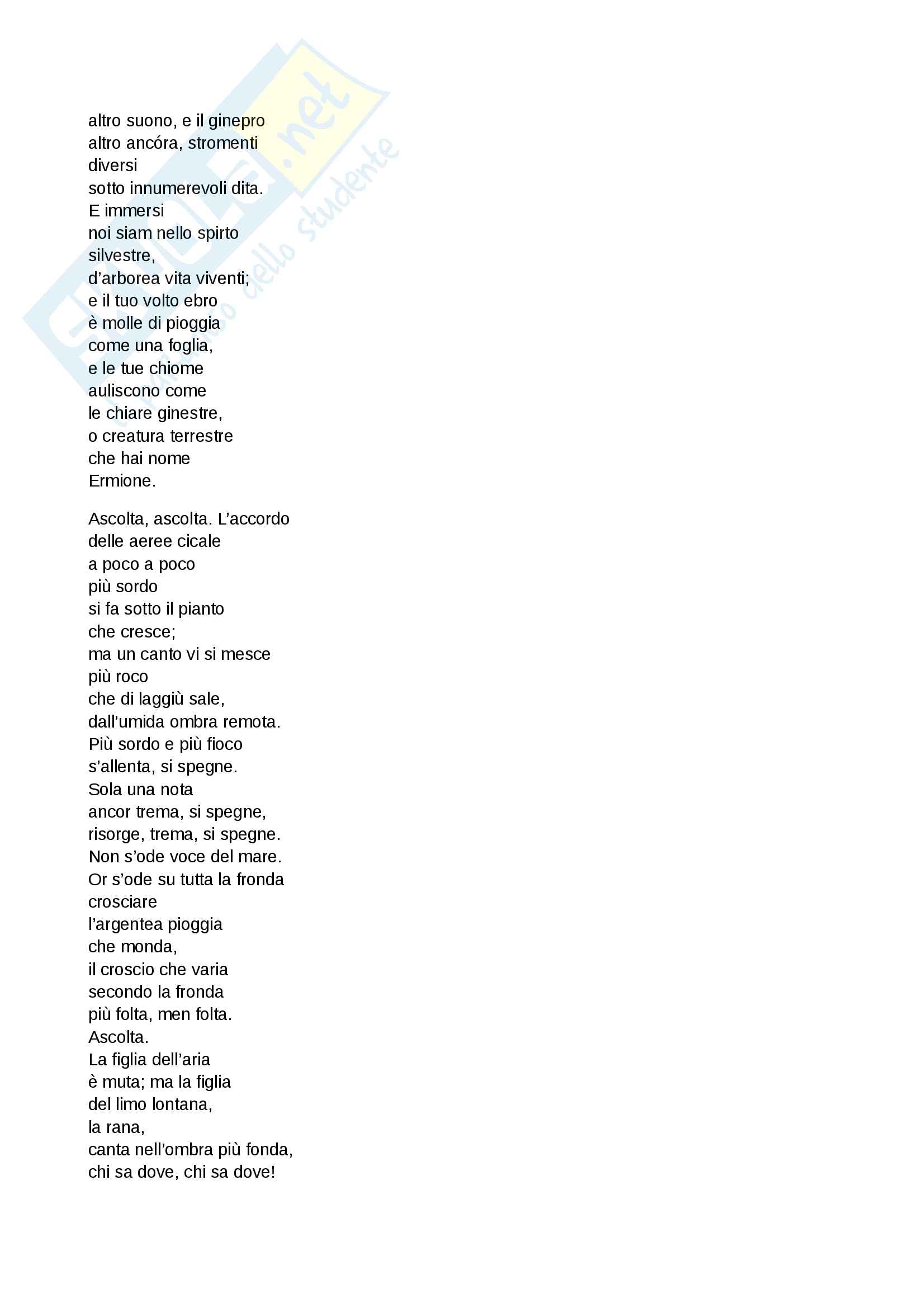 Testo D Annunzio La Pioggia Nel Pineto Docsity