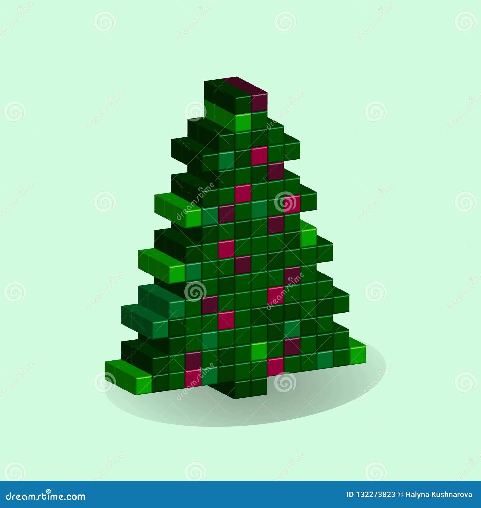 Christmas Tree In Style 3d Pixel Art Ny Background Stock Vector Illustration Of Decor Design 132273823